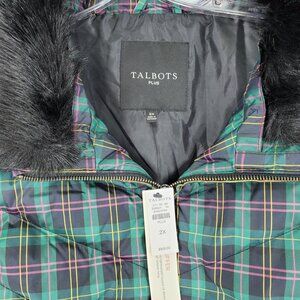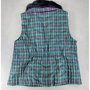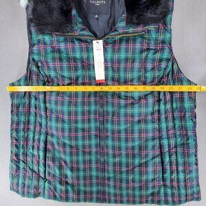 New Talbots Plaid Down Puffer Vest Removable Faux Fur Collar Sz 2X Green Black