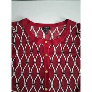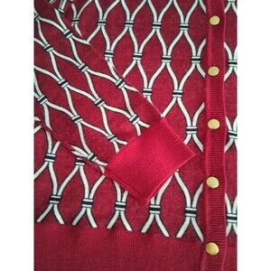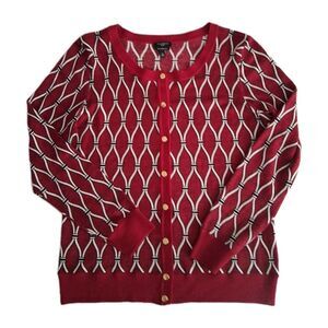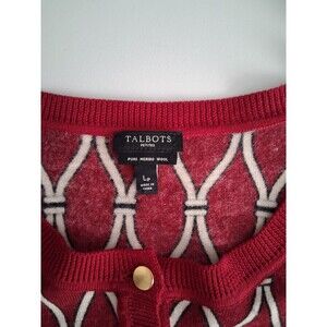 New Talbots Pure Italian Merino Wool Cardigan Button Up LP Large Petite Chain Print Gold Buttons. Measurements in photos.