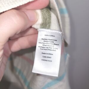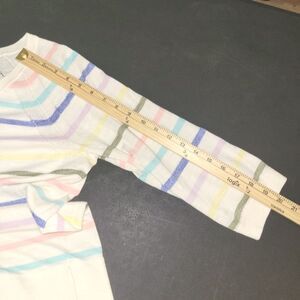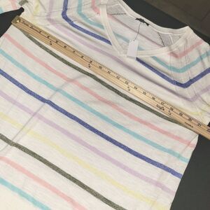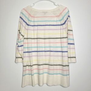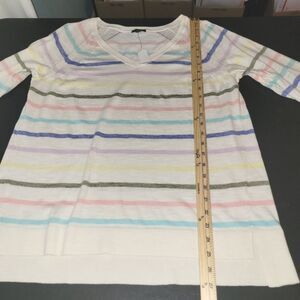 Item: women's long sleeve lightweight top with 3/4 sleeves, v-neck with split hemline, multicolor stripes, plus size 1X and originally $99