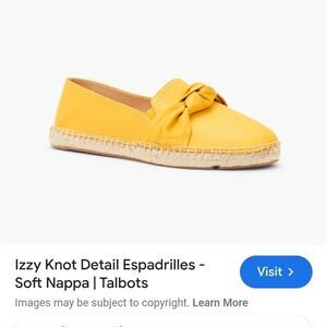 New Talbots Soft Nappa Leather Izzy Knot Detail Espadrilles in Yellow Size 8.5