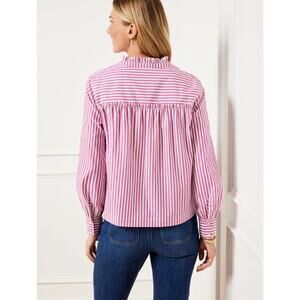 New Talbots Striped Ruffle Neck Top White Red Side Slit Button Long Sleeve Sz 2X