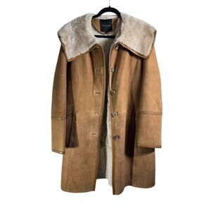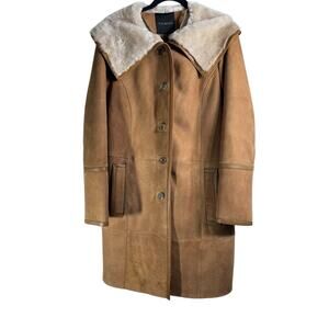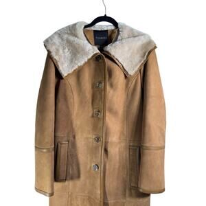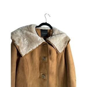 New Talbots Women’s Plus 16 Brown Lambs Wool Suede Shearling Leather Trench Coat