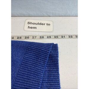 New Talbots Womens Sweater 2x Blue Button Mock Neck Knit Stretch Ribbed Top