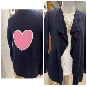 New - softest fabric open cardigan with pink heart at back. Super classy and chic to wear to dinner, Valentine’s Day💗