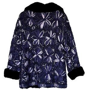 New Tapestry Art Purple Black 100% Silk Rabbit Fur Jacket Coat