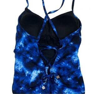 Women’s size S, Strappy Lace up Back, One Piece Swim Suit in Blue Tie Dye by aqua green target.