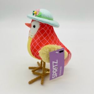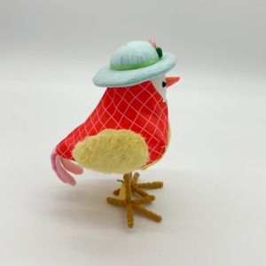 New Target Spritz Spring / Easter 2022 felt bird named Primrose. She is wearing a blue flower hat. **This one is missing the basket of flowers and has a couple of small spots where glue is visible.** Measures approx 6.5”-7” high.