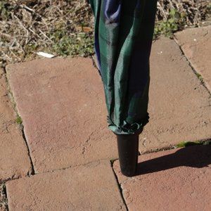 Stay dry in style with this large golf-size umbrella. When open, it has has a 53" diameter and 60" arch. Black rubber handle. The Black Watch tartan in nylon plaid fabric will keep you dry. (Velcro closure and push button automatic open.)