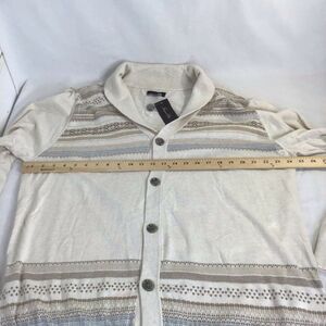 New Tasso Elba Cardigan Sweater Geo Stripe Winter White Men's XXL