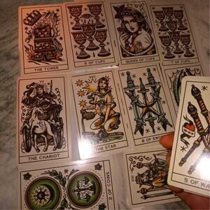 New - Tattoo tarot deck. Measures about 4.1 x 2.4 inches.