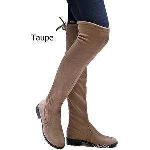 New Taupe Micro Suede Drawstring Over Knee Boots