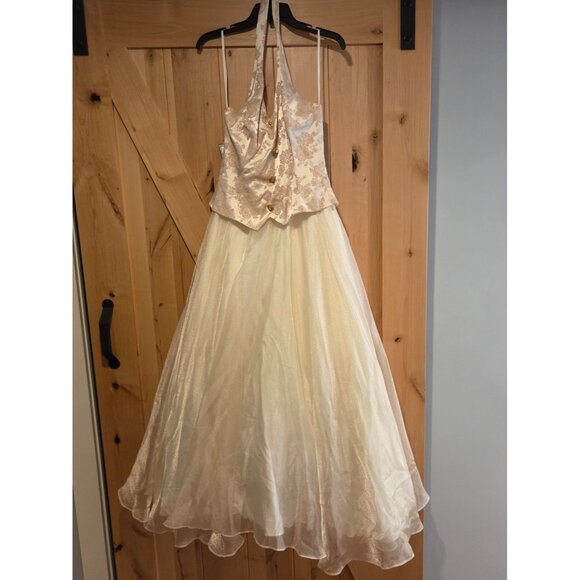 New! Te Rez New York Vintage Champagne Brocade Tull Formal Dress Size 10 Halter