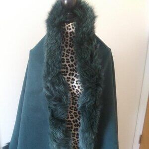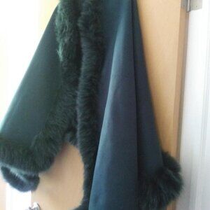 New Teal Greenish Blue Cape Coat trimmed in real FOX Fur