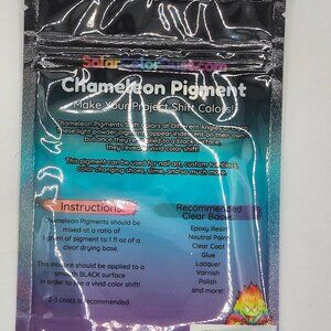 Brand new, sealed packaging of Solar Color Dust in Chameleon Pigment in Teal/Green/Gold. Pouch contains 10 grams of powder.