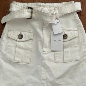 New Ted Baker Cream Eriike Utility Denim Mini Skirt with Front Pockets Size 2