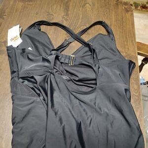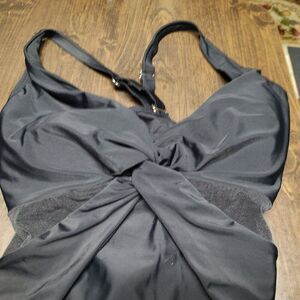 New terra & sky twist with mesh panel 1 piece bathing suit size women's 2X 20W/22W. It is black tummy control.