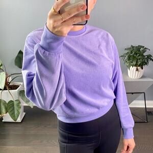 New with tags. French Terry Cloth long sleeve top. Light purple color. Size small. Perfect for lounging in! Round neckline, long sleeve, oversized fit!