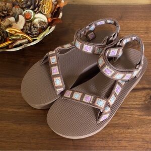 New Teva Women’s Midform Universal Sandals Brown Embroidered Straps Size 11