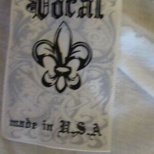 New The Buckle Daytrip denim jacket, size large; Vocal motorcycle graphic sleeveless top with skull & jewels, size XL; measurements provided for fit.