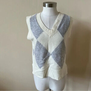New with tags 100% cashmere diamond / argyle sweater vest. Stains on neckline as shown in last photos.