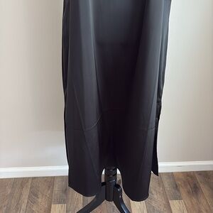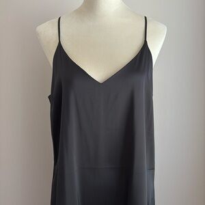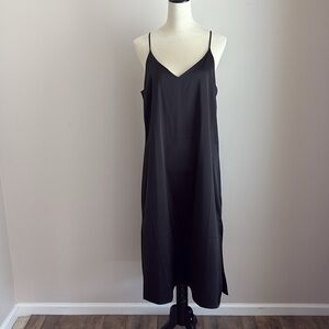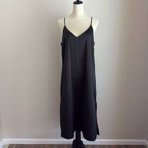 New The Drop Women's Ana Silky Dress V-Neck Midi Slip Spaghetti Strap Black Sz L