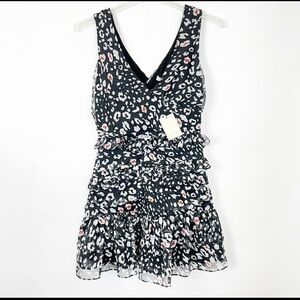 New The East Order from revolve Skye Leopard Mini Dress Tiered Ruffle
