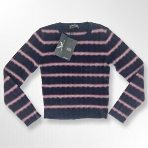 New The Fifth Label Striped Long Sleeve Lightweight Sweater Navy Blue R…