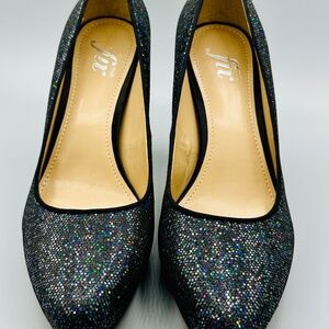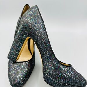 Brand new! Unworn, sparkly and fun platform heels! Size 8. Includes a shoe cover with purchase. Features a 4" heel.
