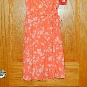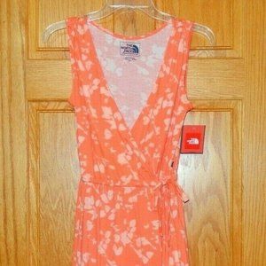 New The North Face XS Extra Small Joice Coral Miami Orange Floral Wrap Dress NWT