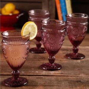 New The Pioneer Woman Adeline 12-Ounce Footed Glass Goblets, Set of 4, Plum: