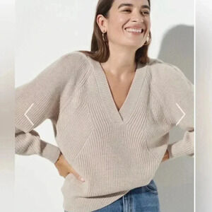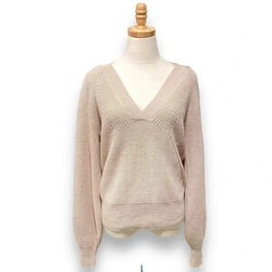 New The Reset R Label The Must-Have V Neck 100% Wool Sweater Natural Pink XS