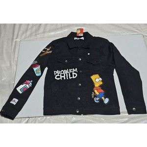 New The Simpson Bart Problem Child Jeans BLACK Jacket Vintage Look Small Adult
