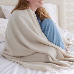 New The Company Store Legends Luxury Lambswool Ivory Throw Blanket