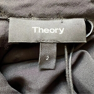 New with tag! Black silk-blend dotted metallic jacquard adorns their sheer lurex chiffon shift dress from Theory.