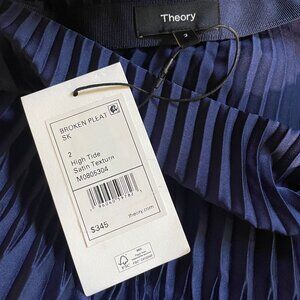 New Theory Satin Broken Pleat Midi Skirt High Tide Navy 2, XS $345