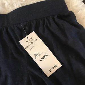 Three Dots Off The Shoulder Top in Navy. elasticized off the shoulder neckline, elbow length sleeves and a draped tired jersey silhouette. Lined.