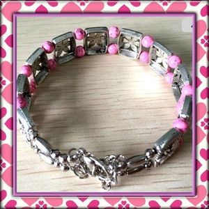 🌷NEW W/O Tags 🌷Tibetan Silver and Pink Bead Bangle Bracelet 🌷FITS 6"-9"