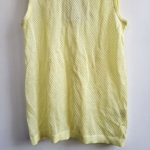 Sleeveless semi-sheer viscose-blend mesh tank top in yellow. Rib knit crewneck collar, armscyes, and hem.