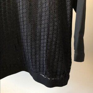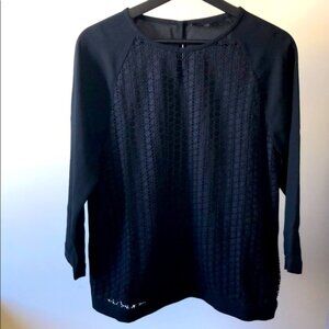New Tibi guipure lace front panel floral applique cut-out mixed media blouse top