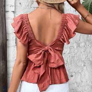 New Tie Backless Ruffle Top