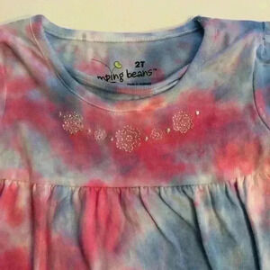Hand tie dyed long sleeve shirt Jumping Bean with embroidered flowers