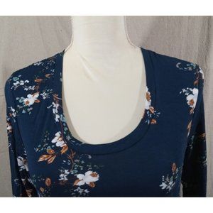 New! Time & True L/S Floral Navy Maternity Dress, S 4-6 Small Midi