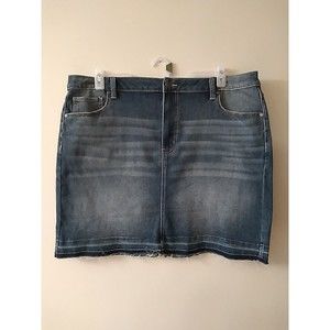 New Time and Tru 18 Denim Jean Stretch Skirt Factory Distressing