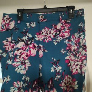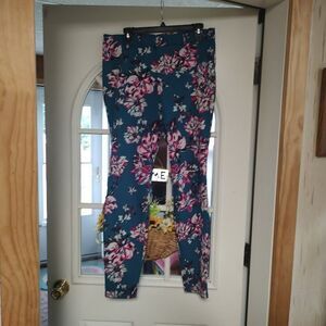 New without tag time and tru pull on legging pants size women's L 12/14. They are a blue color with flowers inseam 28 inches rise 12 inches.