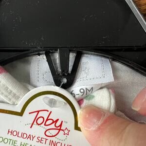 New Toby Mistletoe Baby Girl Headband Teether 2 Way Zip Pajama Set - 6-9 months