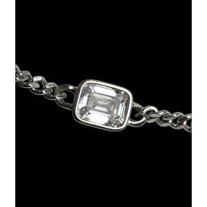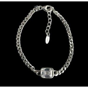 New Tocara Sterling Silver Bracelet DiAmi Crystal Oblong Centerpiece Curb Chain
