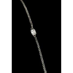 This Tocara bracelet combines sterling silver curb chain with a clear rectangular DiAmi crystal centerpiece, offering a sophisticated accessory for both formal and casual attire. Made in Canada.