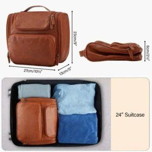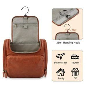 New Toiletry Bag, Travel PU Leather Hanging Hook, Brown