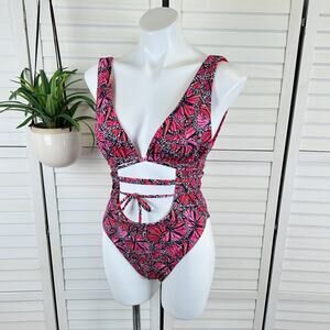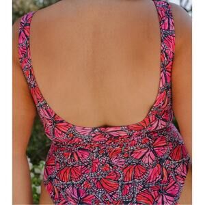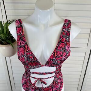 New Toluca Vitality Nicola One Piece Swimsuit Pink Red Butterfly Cheeky Tie Sz L