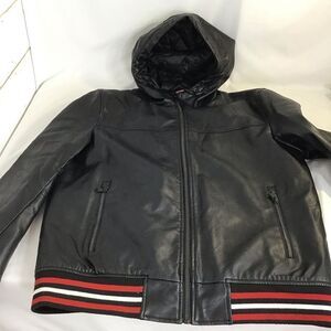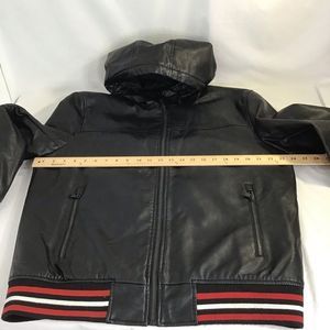 New Tommy Hilfiger Faux Leather Bomber Jacket Hooded Black Men's Large